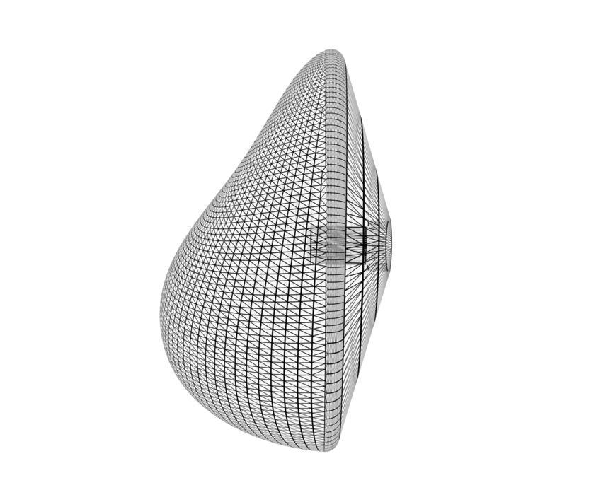 Im Stehen nehmen die Implantate durch die neue Fließeigenschaft eine natürliche tropfen- oder birnenförmige Form an. Man spricht auch von anatomischer Form. Bisherige anatomische Implantate haben immer diese Form, wirken daher im Liegen oder bei Seitenverlagerung eher unnatürlich. Außerdem kann eine Rotation eines anatomischen Implantates eine Folgeoperation notwendig machen.