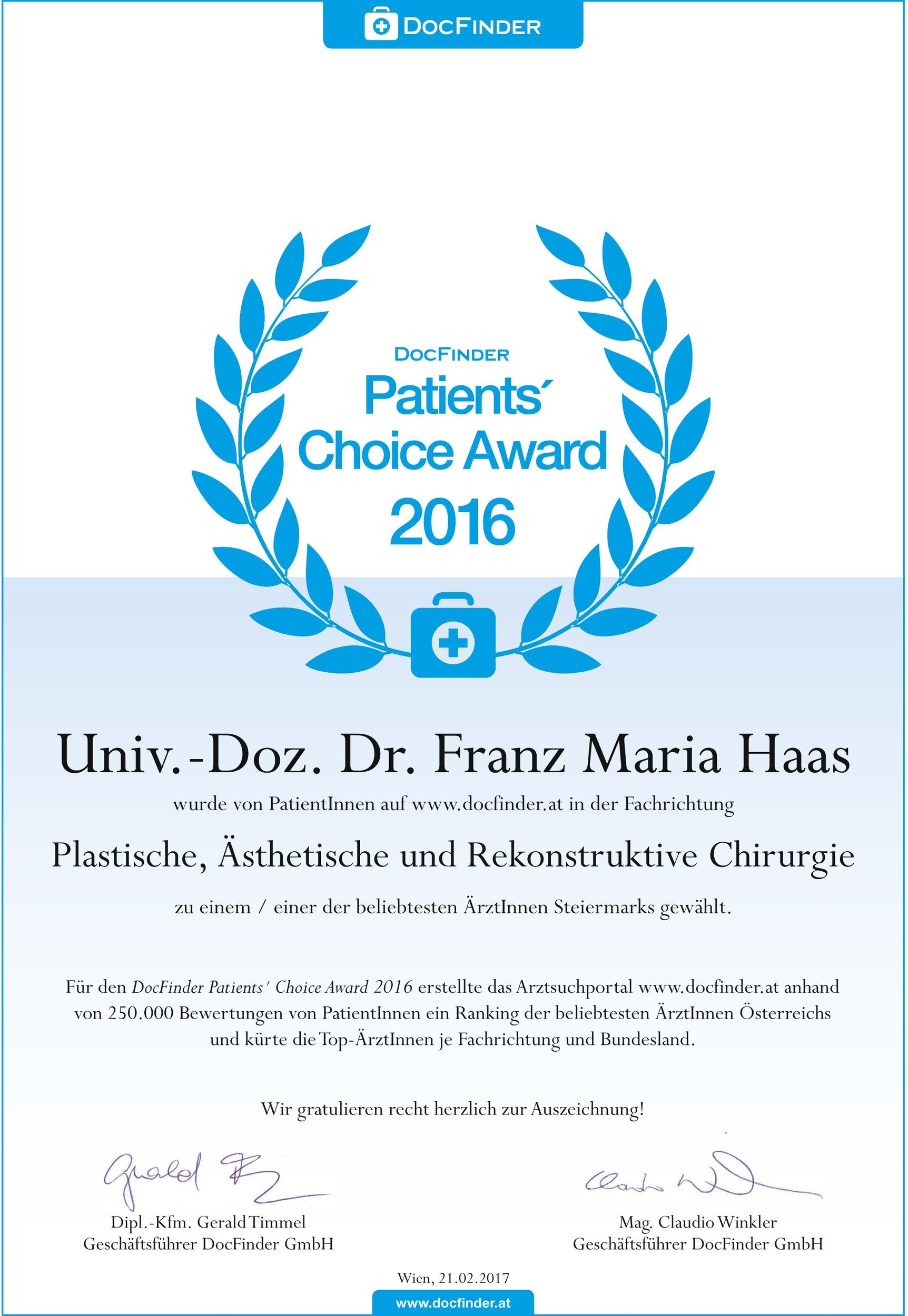 (DocFinder Patients Choice Award, ausgestellt Februar 2017)