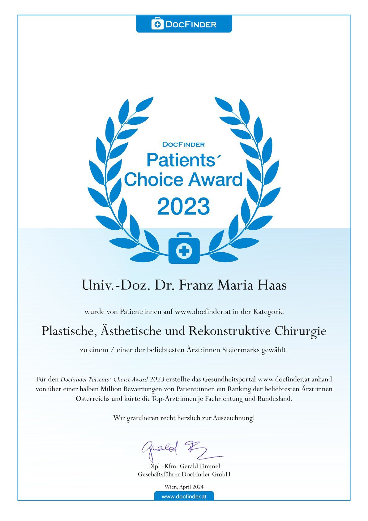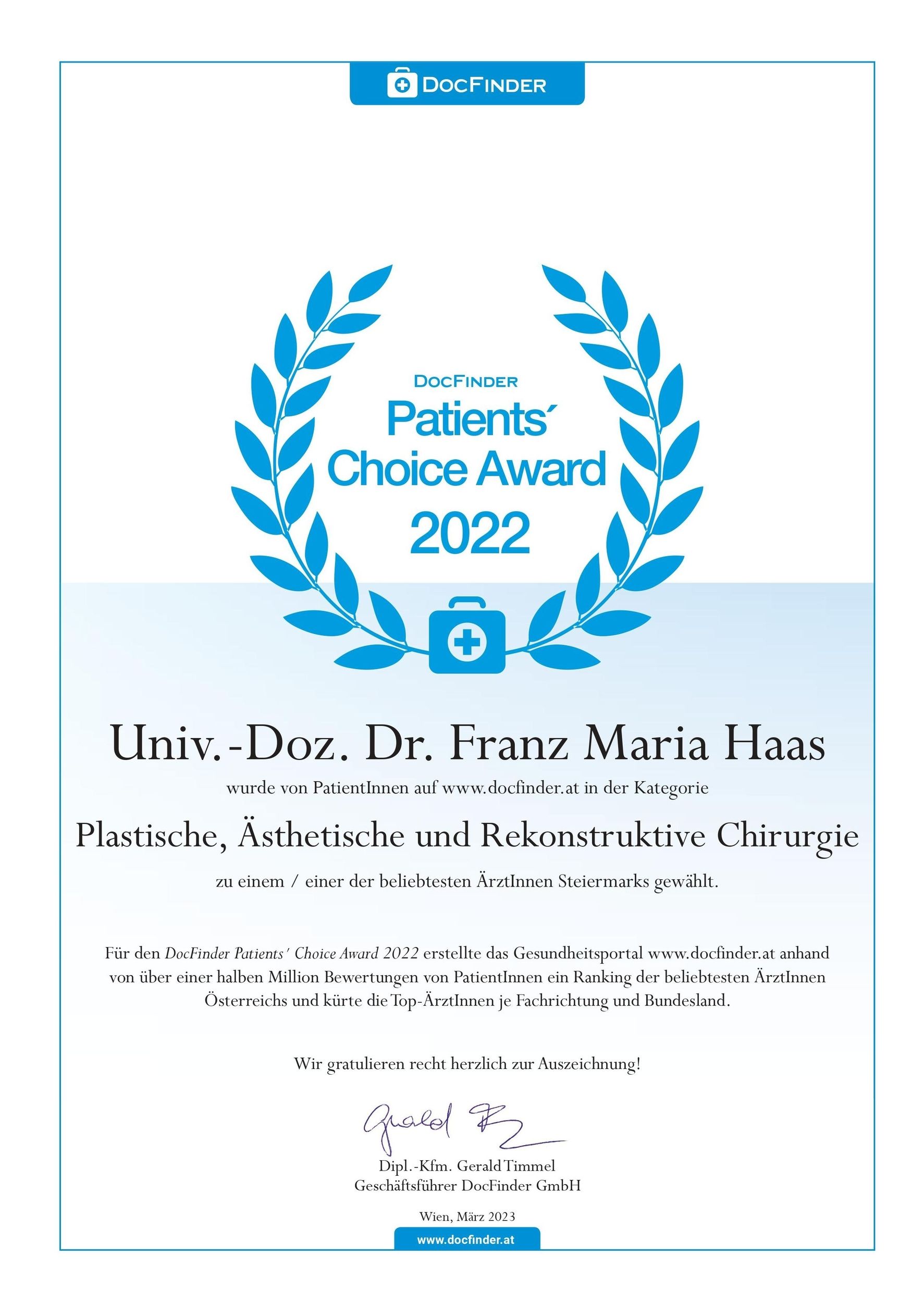 (DocFinder Patients Choice Award, ausgestellt April 2022)